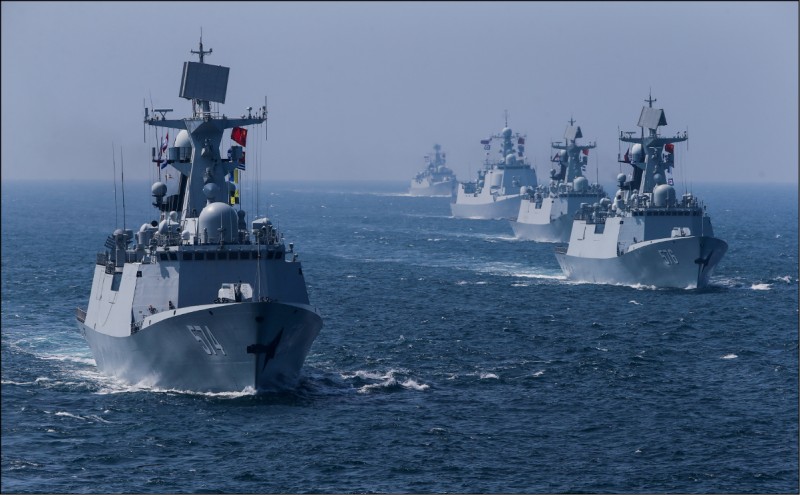 二○一六年九月中國與俄羅斯海軍在廣東省湛江海域聯合軍演。(路透檔案照)