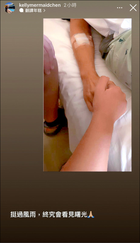陳若儀也PO出一張林志穎的病榻照,照片中林志穎雖沒露臉,但可看見他躺在病床上,手上還貼著紗布,大兒子Kimi緊緊牽著林志穎的手,相當有愛。對於林志穎何時出院、目前的狀況等等問題,陳若儀透過經紀人表示:「感謝關心,希望他狀況越來越好,其他不方便回應,就讓病人多多休養。」