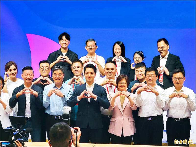 台北市長蔣萬安昨透過市府舉辦的就業博覽會,與五位藍委王鴻薇、徐巧芯、羅智強、李彥秀及賴士葆同台合體。(記者田裕華攝)