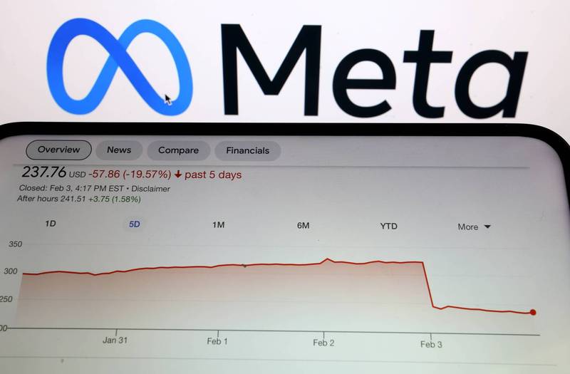 轉攻元宇宙要付出的代價開始浮上檯面,臉書2021年Q4財報不如預期,股價崩跌。(法新社)