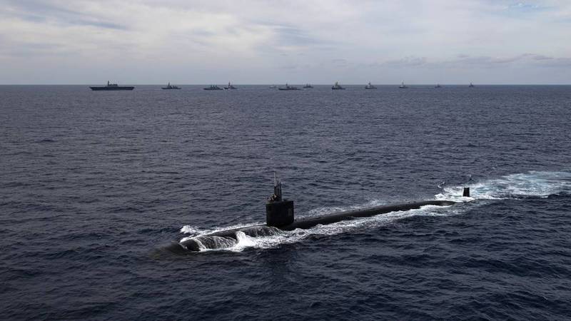 美軍太平洋艦隊22日發佈5國海軍操演的照片,顯示至少有2艘潛艦,和包括日本准航空母艦「出雲級」直升機護衛艦,與美國航空母艦「卡爾文森號」在內的15艘水面艦艇參演。卡爾文森號搭載CVW-2艦載機聯隊,和F-35C戰鬥機中隊,並配備「魚鷹」運輸機;美軍還出動飛彈巡洋艦、驅逐艦、補給艦等。