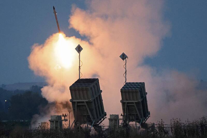 以色列鐵穹防空系統攔截從加薩走廊發射的火箭彈。(法新社)
