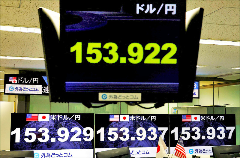 週一日圓兌美元一度升至153.4日圓兌1美元,漲幅達1.5%,創去年11月中以來最高。(路透)
