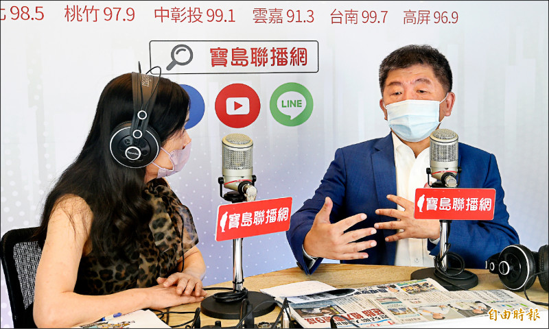 民進黨台北市長參選人陳時中(右)昨接受廣播專訪。(記者廖振輝攝)