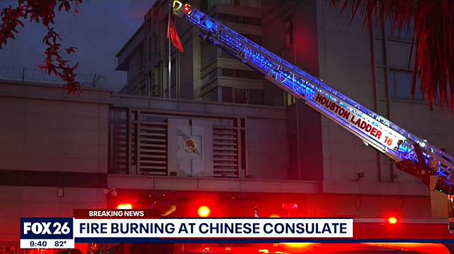 休士頓警方透露,中國總領事館正在銷毀機密文件,因為他們將於星期五(24日)下午4點被驅逐。(圖擷自《Fox26》)