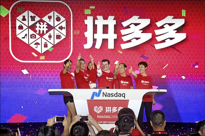 美國眾議院三日通過外國公司問責法案,未來在美上市、卻未能達到美國審計要求的中概股公司將下市。該案五月已獲參院通過,現已送交美國總統川普等待簽署。圖為2018年在那斯達克上市的中企拼多多。(路透)
