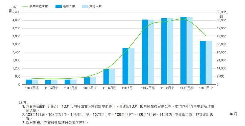 減班休息家數、人數趨勢變化表(製表:記者李雅雯 圖:記者羅沛德)