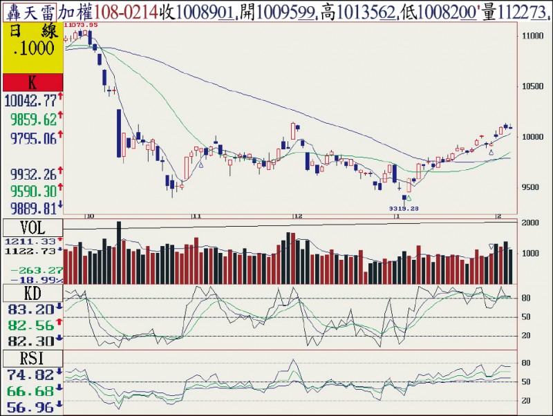 集中市場加權指數日線圖(2/14)