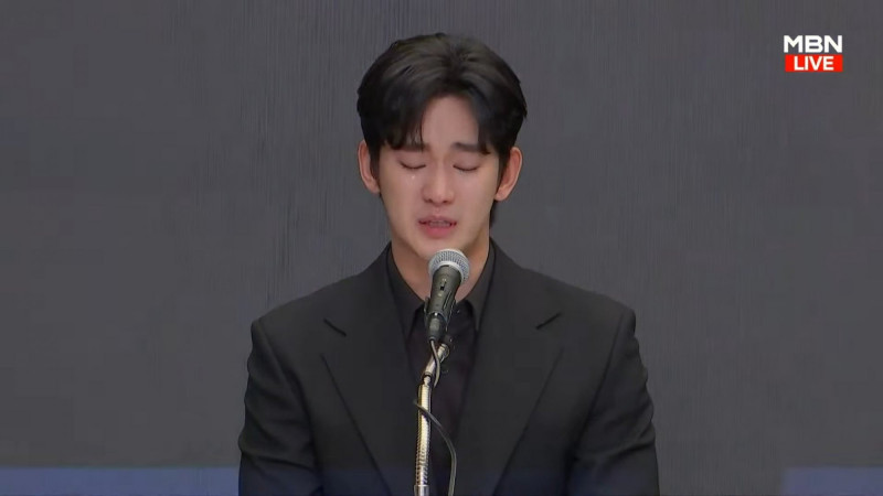 金秀賢召開記者會說明與金賽綸關係時,數度激動落淚。(歐新社)金秀賢召開記者會說明與金賽綸關係時,數度激動落淚。(歐新社)