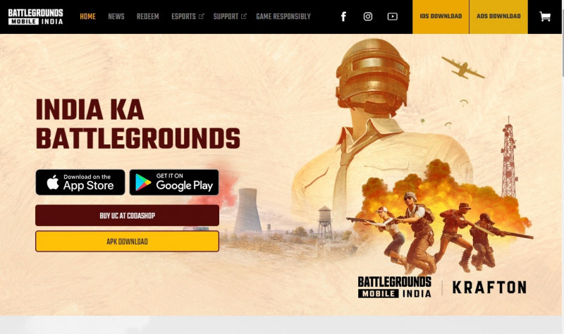 印度政府以擔心與中國分享數據為由封鎖南韓手遊BGMI。(圖擷取自BGMI官網首頁)