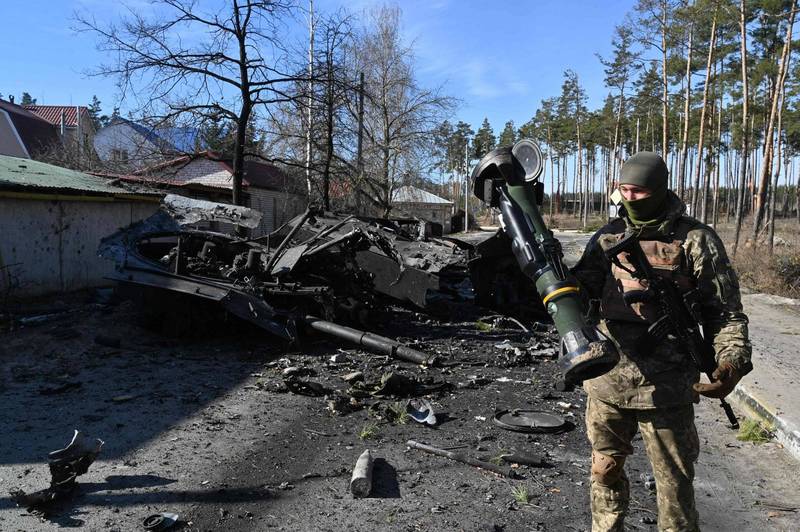 裴卓斯認為,俄軍面臨的對手是一群絕對堅定、能力驚人、創新且足智多謀,還是在「主場」作戰的軍人。圖為使用NLAW反裝甲飛彈擊毀俄軍裝甲車的烏軍士兵。(法新社)