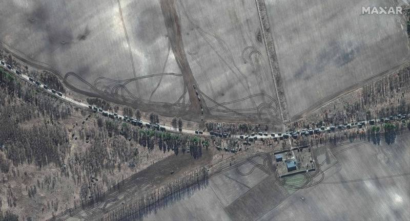 裴卓斯指出,俄軍運輸控制做的相當不確實。圖為基輔北方的大規模俄軍車隊。(法新社)