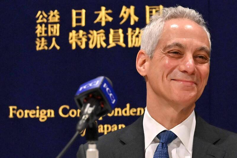 美國駐日大使易曼紐(Rahm Emanuel)今天在記者會中就民進黨在這次總統大選中獲勝表示推崇,他表示「這是民主主義美好的一天」。(法新社)