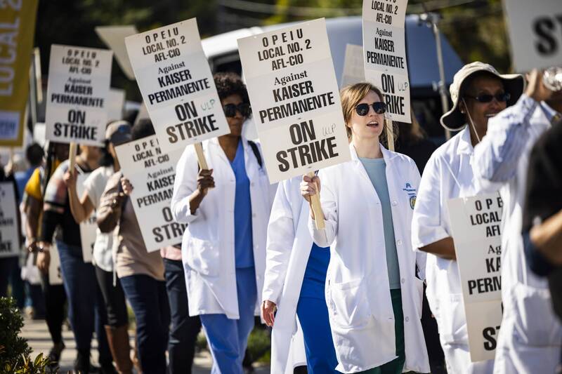 美國凱薩醫療機構的醫療人員上週發起罷工活動,勞資雙方將在本週重啟談判。(美聯社)