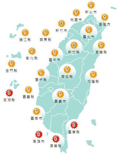 今日各地紫外線指數預報概況。(圖擷取自中央氣象局)